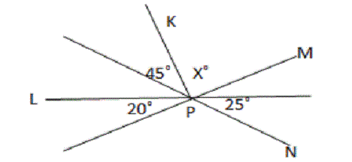 25˚ + 45˚ + 20˚ + x˚ =180˚ → x=90˚