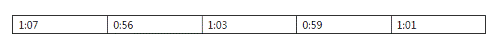 Tom ran a quarter mile five times yesterday. The table shows the time of each run in minutes and seconds. For example, the time 1:07 represents 1 minute and 7 seconds. What is the range, in seconds, of the times of Tom’s five runs?